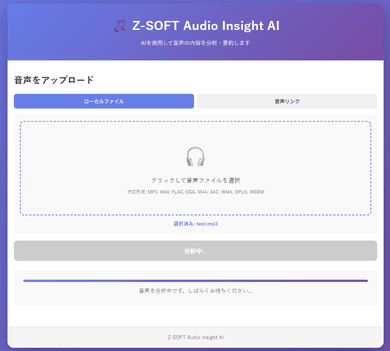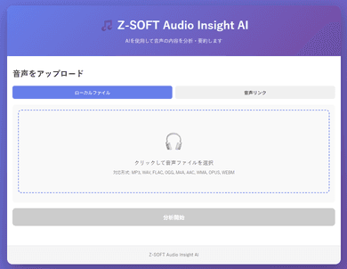 「Z-Audio Insight AI」は、Googleの先進的なAIモデルであるGemini APIを活用し、音声データの内容を高度に分析・要約するWebアプリケーションです。