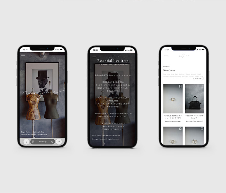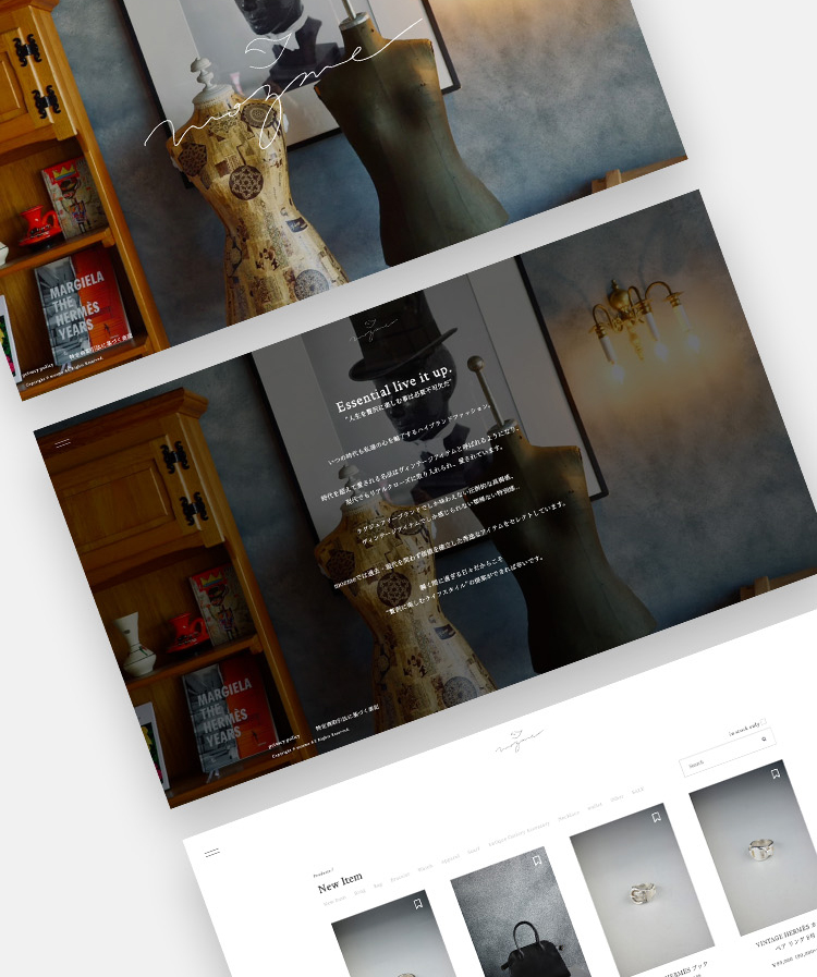 ヴィンテージアパレル販売を開始するにあたり、クライアント様の世界観を大切にしたシンプルなデザイン・構成にて作成いたしました。
