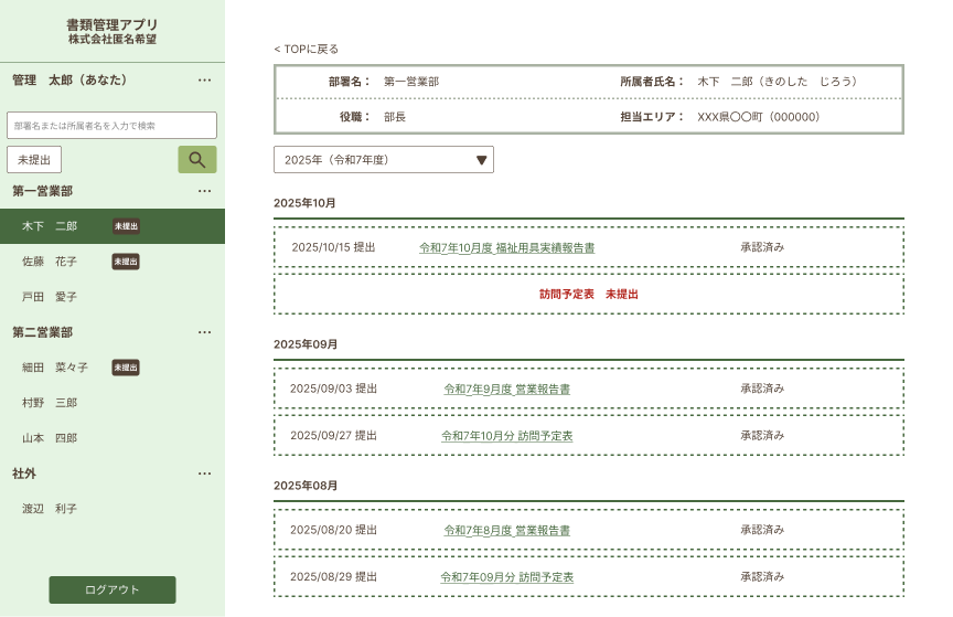 企業内の提出書類を一元管理し、検索・共有を効率化するシステムです。