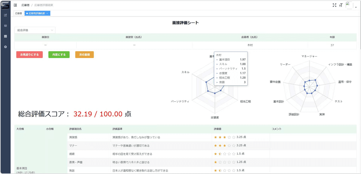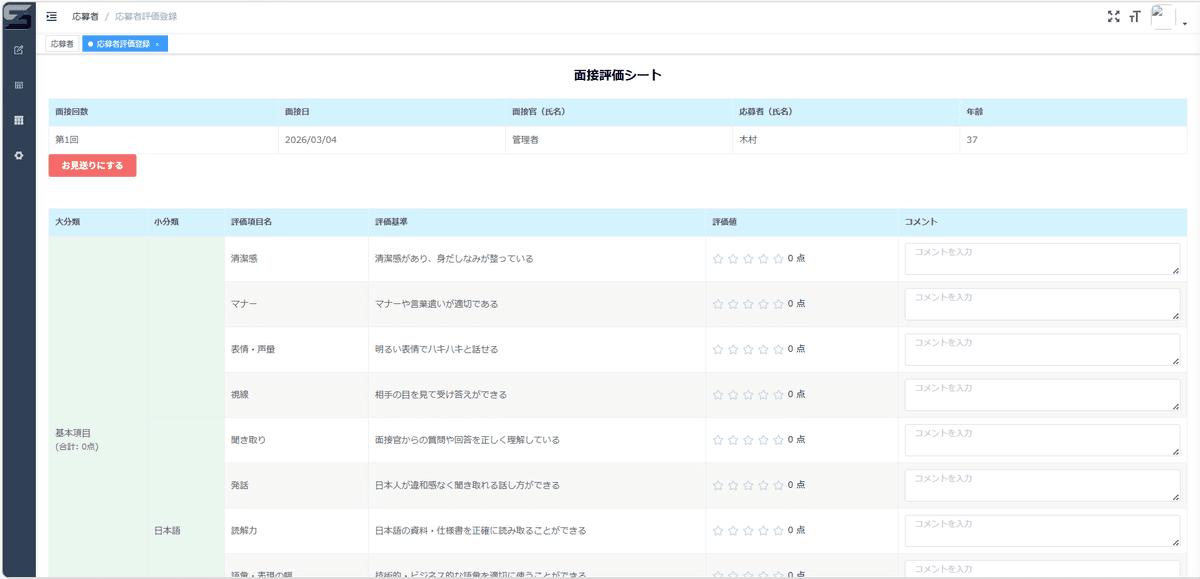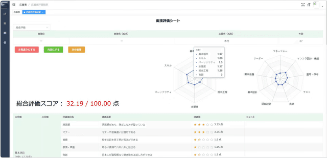 これにより、面接ごとに分散していた情報を一元管理し、採用判断に必要なデータを即座に可視化することが可能となります。