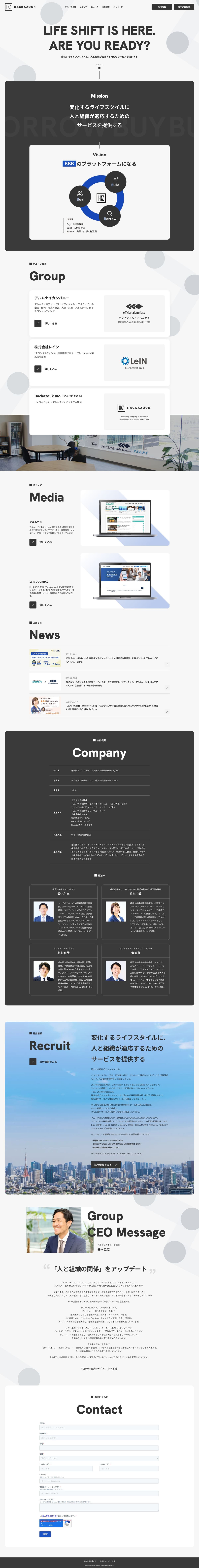 株式会社ハッカズーク様のコーポレートサイトリニューアルを担当いたしました。経営統合後の新体制と未来のビジョンとして掲げられた「BBB(Buy/Build/Borrow)プラットフォーム」という構想を核に、サイト構成を再構築し制作いたしました。