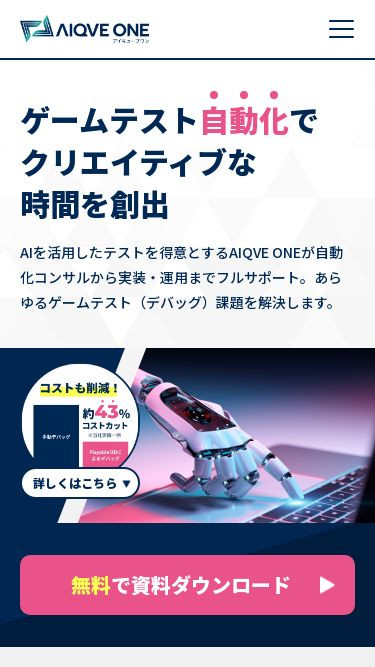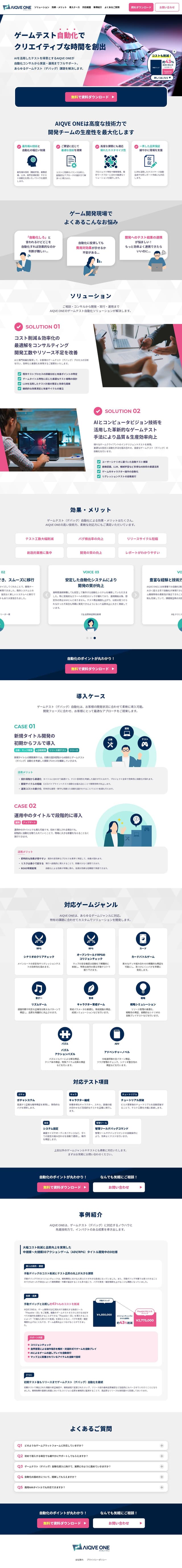 AIQVE ONE株式会社様のゲームテスト自動化ソリューションのサービスサイト新規制作を担当いたしました。