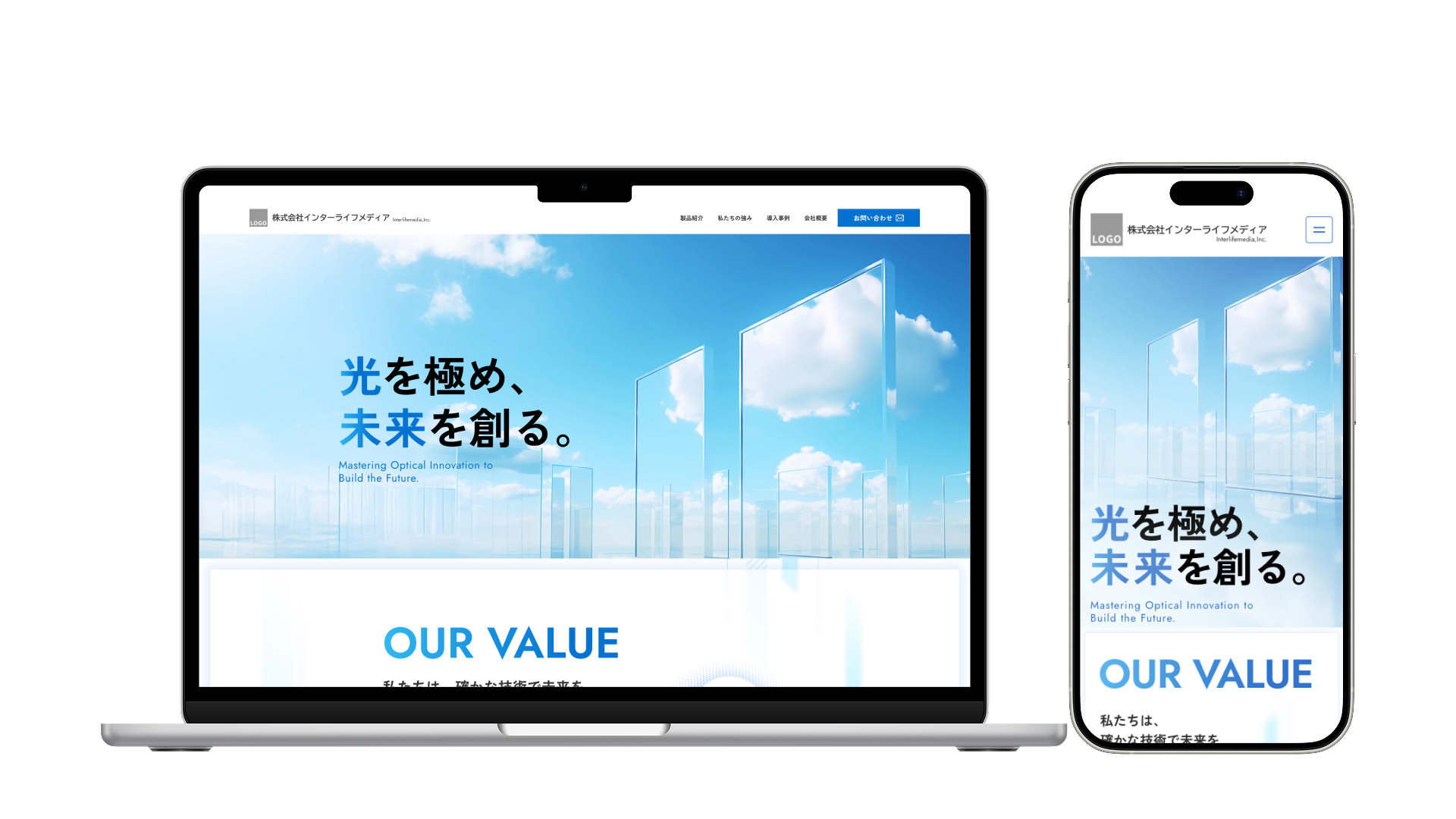 ベースは検証済みの自社で制作した高品質レイアウトを使用しつつ、メインビジュアルや配色は貴社専用にフル調整。ゼロから作るコストを抑えつつ、上場企業レベルの「しっかりとした信頼感」のあるサイトを短納期で実現します。