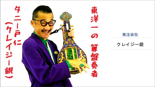 クレイジー銀氏:これまでピアニストとして活動するほか、作詞・作曲・編曲・音楽講師などを手掛けてきました。近年は、1950年代にブレイクしたトニー谷さんの算盤パーカッション芸に強烈に惹かれ、遺された御本人の動画を繰り返し視聴して御本人同様の演奏法を習得しました。別名義の芸名にて「タニー戸仁」を名乗っており、「東洋一の算盤奏者」(存命中では)と謳っています。トニー谷さんの真骨頂は、算盤をパーカッションのように使って演奏しながら歌う唯一無二のパフォーマンスですが、今回、私自身が同様のパフォーマンスを行うオマージュ作品を制作しようという企画が持ち上がりました。