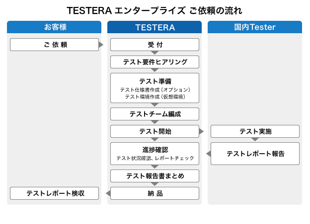 TESTERAは、テスト依頼者(カスタマー)とテスト実施者(テスター)をマッチングする事で、