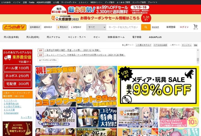 「とらのあな」は、漫画・アニメグッズ等の購入が可能な通販サイトです。