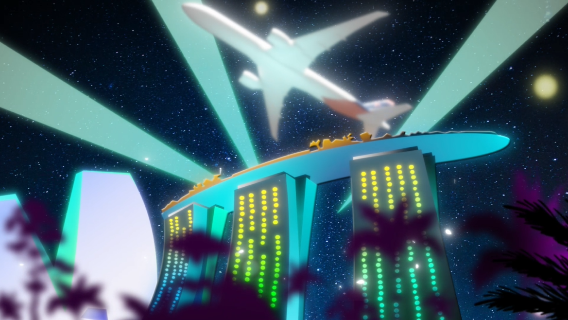 機内という特殊な環境において、視認性・演出テンポ・没入感のバランスを考慮しながら構成を設計し、短時間でも印象に残るようシンプルかつダイナミックな展開でストーリーを構築しています。