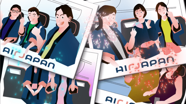 企画 / 構成設計 / 演出設計(機内空間最適化) / イラスト制作(全点オリジナル) / アニメーション制作 / 映像編集 / 最終出力