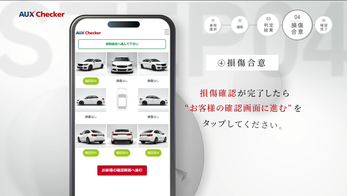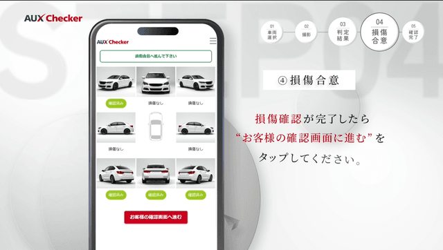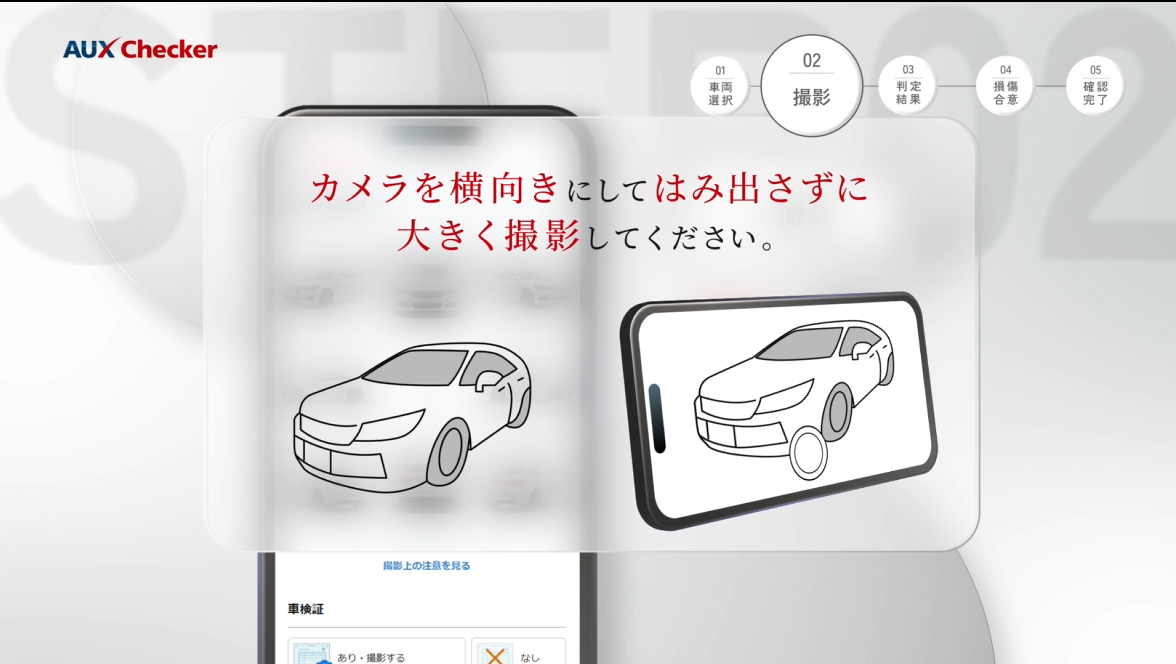 AUX Mobility株式会社が提供する、事故車の損傷判定や価格算出を行うAIサービスの紹介動画およびチュートリアル動画を制作。スマートフォンで撮影した車両画像から損傷や価格を算出する技術を活用した、モビリティ業界の効率化を支援するサービスです。