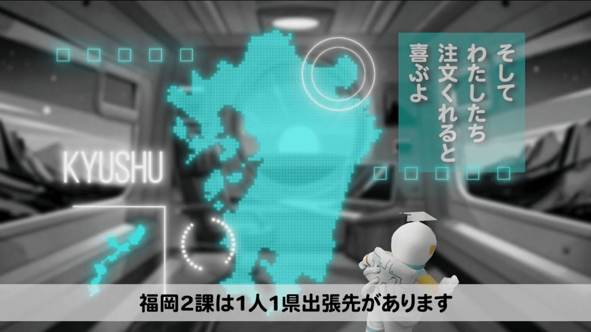 株式会社ISSの全国企業イベントにて上映される、福岡支社向け映像を制作。社員をモチーフにしたキャラクターが宇宙へ飛び立ち、お客様の課題を解決していくストーリーを、コミカルかつテンポよく展開しています。