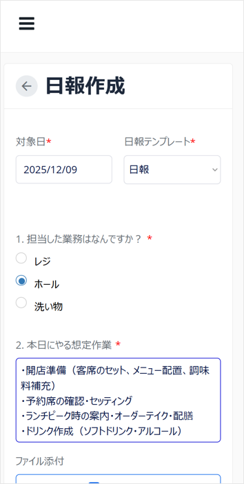 全国に複数ブランドを展開する総合外食企業向けに、日報業務を起点とした社内コミュニケーション基盤を企画・開発。