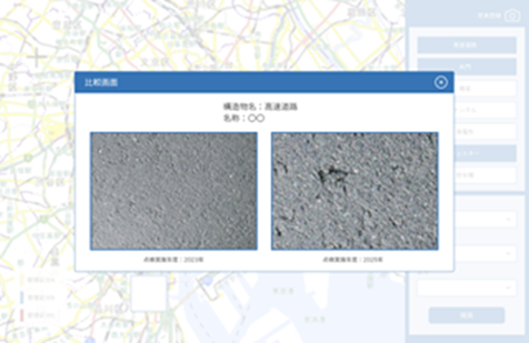 ・写真の時期比較機能により経年劣化を可視化し、点検・保守計画の精度を向上