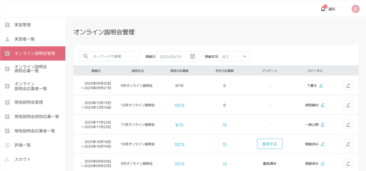 ・説明会/実習管理機能