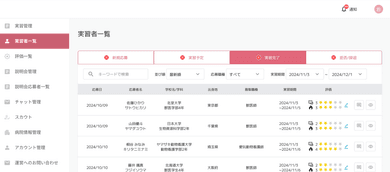 ・応募学生を一覧で確認、評価管理も可能