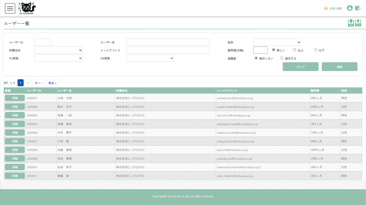 検索・管理・分析機能を通じて迅速な意思決定を支援し、拡張性の高い設計により、今後の業務拡張や新機能追加にも柔軟に対応できるシステムとなっています。