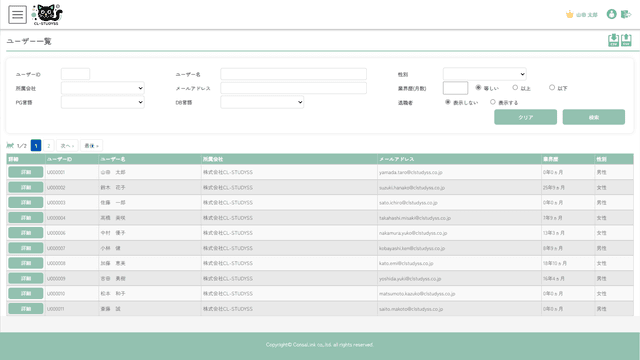 社員・パートナー・案件・資産などの社内情報を一元管理する統合業務システムです。