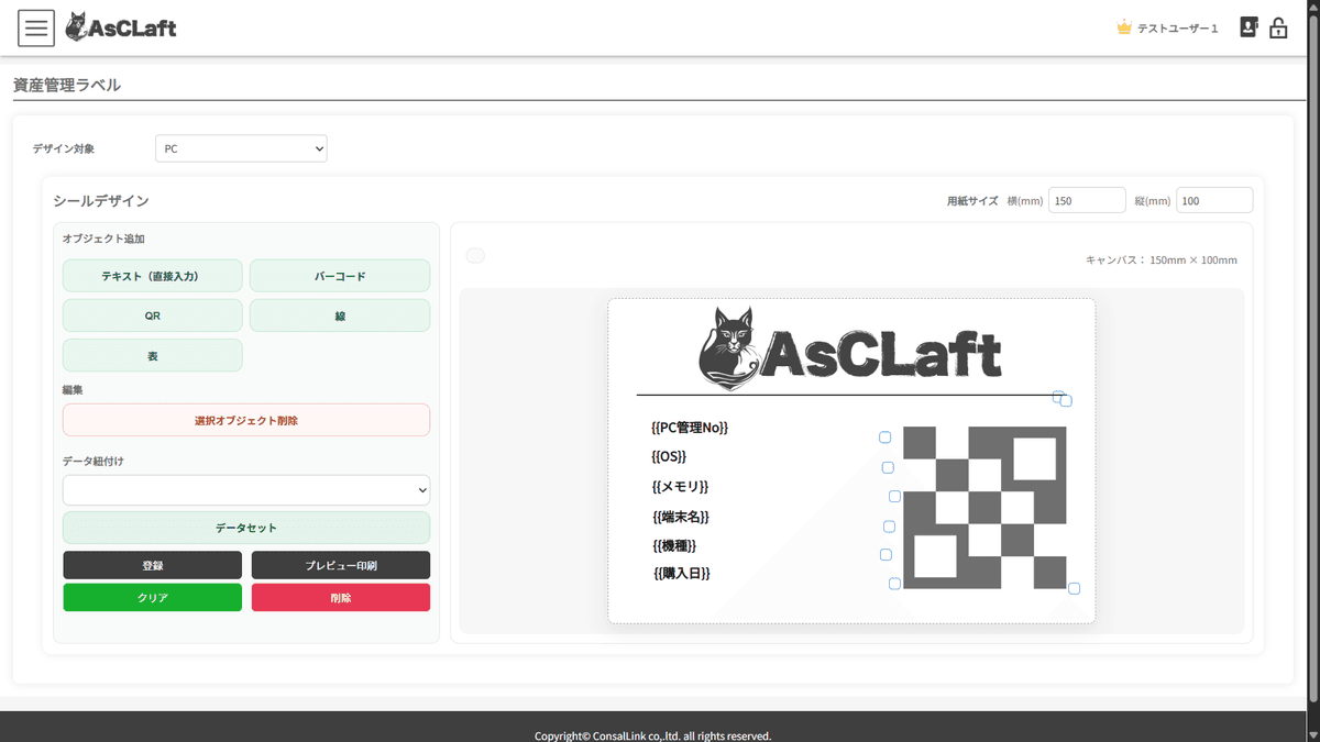 資産ごとにQRコードラベルを作成し、資産情報と紐づけて管理できます。