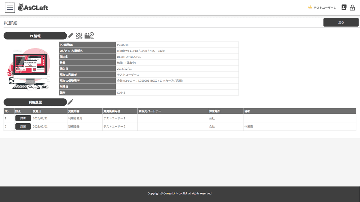 貸与履歴を管理することで、資産の利用状況を追跡できます。